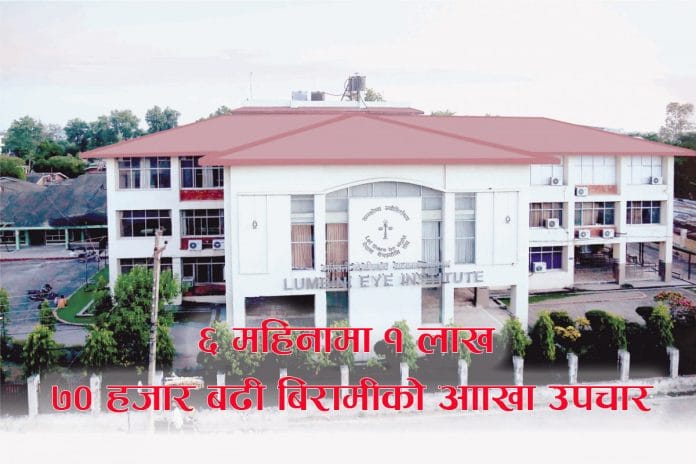 भैरहवा । श्री रण अम्बिका आँखा अस्पतालमा ६ महिनामा १ लाख ७० हजार बढिले उपचार गराएका छन् । रुपन्देहीको सिद्धार्थनगर नगरपालिका वडा नं ३ मा रहेको लुम्बिनी नेत्र विज्ञान अध्ययन संस्थान तथा रिसर्च सेन्टर श्री रण अम्बिका आँखा अस्पतालमा गत साउन देखि पुस मसान्त सम्म १ लाख ७० हजार २ सय ८३ जनाको उपचार भएको अस्पतालले जानकारी दिएको छ । मङ्गलवार तिलोत्तमा नगरपालिकामा भएको अर्ध वार्षिक समीक्षा गोष्ठीमा अस्पतालले उक्त जानकारी दिएको हो । अस्पतालले यो अवधिमा १८ हजार ६४ जना बिरामीको आँखा अपरेसन गरेको समेत जनाएको छ ।