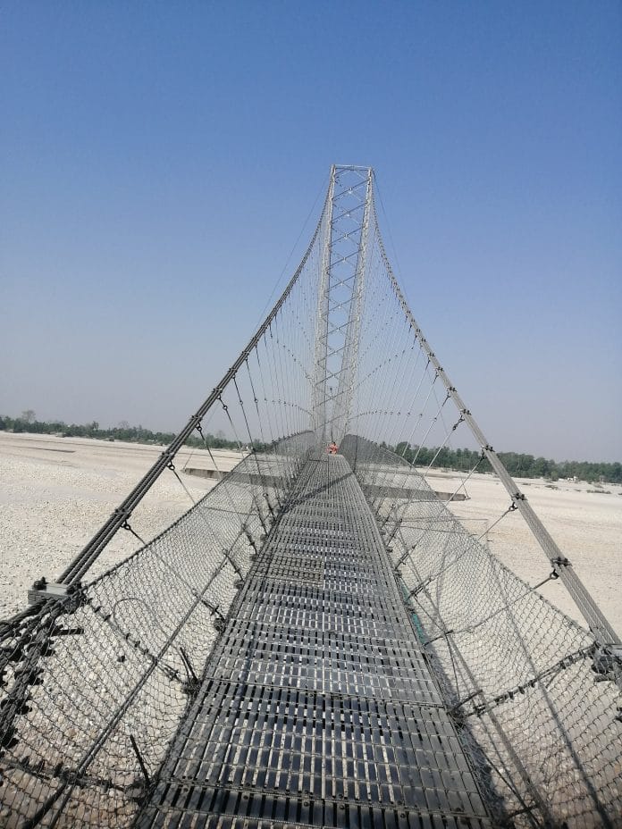 नेपालको सुदूरपश्चिम प्रदेशको महाकाली नदीमाथि निर्मित महाकाली पुल (चाँदनी दोधारा) । २०६० मा उद्घाटन भई सञ्चालनमा आएको यस पुलले पश्चिम क्षेत्रमा रहेका तत्कालीन चाँदनी र दोधारा गाविसलाई जोडेको छ । उक्त गाविस अहिले चादनी दोधारा गाउँपालिकाका नामले परिचीत छ । तस्वीरः छवि ज्ञवाली