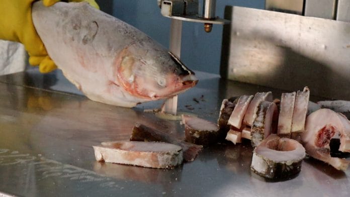 केन्द्रमा सबैभन्दा पहिला माछाहरू पोखरी बाट ल्याएर कत्ला, भुँडी लगायत राम्रै सफा गरिन्छ । सफा गरेपछि चिस्याउनको लागी केन्द्रमा रहेको २ वटा कन्टेनर माछालाई राखेर चिस्याउने गरिन्छ । माछा चिसोले जम्छ । चिस्याएका माछाहरूलाई मेसिन बाट सानो पिस बनाएर काटिन्छ । त्यसपछि प्याकिङ गरेर बजारमा पठाउने गरिएको छ ।
