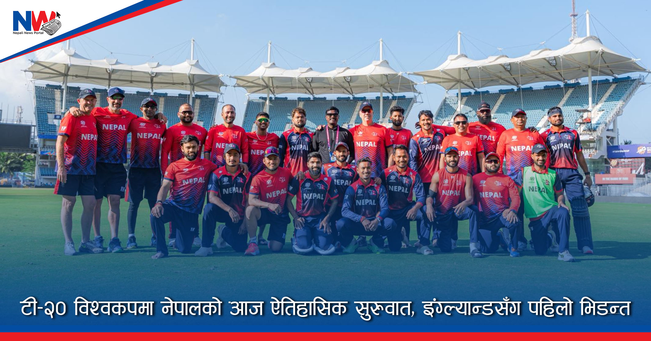 काठमाडौं । नेपाली राष्ट्रिय क्रिकेट टोलीले आईसीसी टी–२० विश्वकप क्रिकेटअन्तर्गत आज आफ्नो पहिलो खेल खेल्दैछ । नेपालले आज विश्व क्रिकेटको बलियो टोली इंग्ल्यान्डसँग प्रतिस्पर्धा गर्न लागेको हो ।