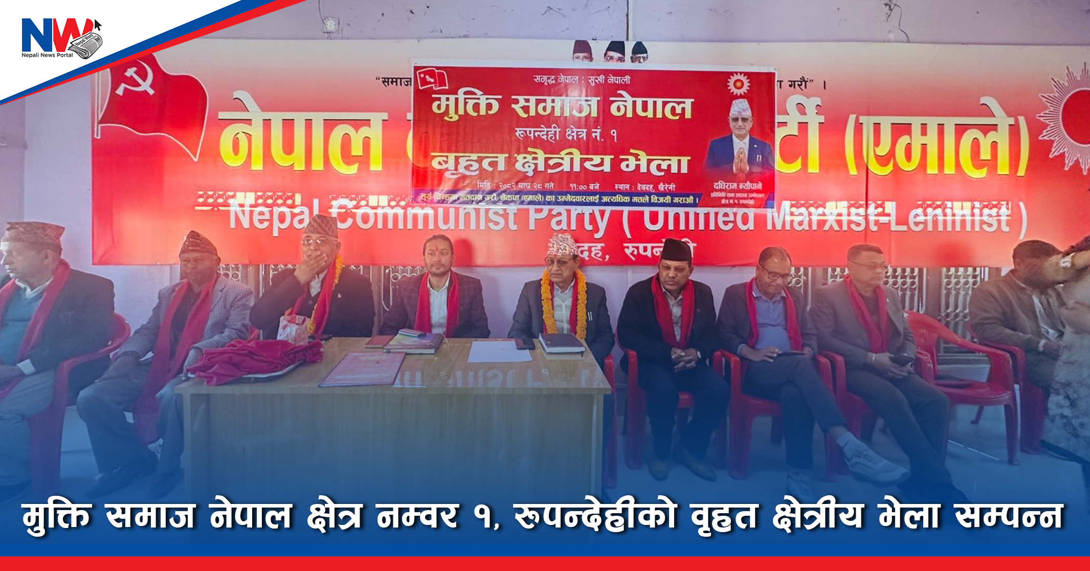 माघ २९ । नेकपा एमालेको भातृ संगठन मुक्ति समाज नेपाल क्षेत्र नम्वर १, रुपन्देहीका बृहत्त क्षेत्रीय भेला सम्पन्न भएको छ । संगठन मुक्ति समाज नेपालका संयोजक विकास गहतराजको अध्यक्षता र नेकपा एमालेका केन्द्रिय सचिव छविलाल विश्वकर्माको प्रमुख आतिथ्यतामा उक्त कार्यक्रम सम्पन्न भएको हो । कार्यक्रमलाई सम्बोधन गर्दै सचिव विश्वकर्माले मुलुकको विकासको लागि नेकपा एमालेको जीत आवश्यक रहेको बताए । उनले नेकपा एमालको नेतृत्वको सरकारले विकास र समृद्धिका अभियान अगाडि बढाएकोले त्यो योजना पूर्णता दिन पनि एमालेलाई जिताउनु पर्नेमा जोड दिए । उहाले नयाको नाममा भ्रम सृजना गरिरहेको बताउदै राजनीतिमा पुरानो र नया भन्ने नहुने बताउदै त्यसको लागि नीति र सिद्धान्त आवश्यक रहेकोमा जोड दिए । उहाले नया राजनीतिक दलहरुले गरेको भ्रम चिर्नको लागि पार्टीका कार्यकर्ताहरु लाग्नु पर्ने बताए। पुर्वमन्त्री समेत रहेका नेता विश्वकर्माले जेनजी आन्दोलन पछि बनेको सरकारले क्षेत्र नम्वर १, को विकास योजनाका रकम कटौती गरेको बताए। उनले दशगंजा देखि पाल्पा जोड्ने सडक सञ्जाललाई प्राथमिकतामा राखेर योजना अगाडि सारेको बताए । सोही अवसरमा बोल्दै पार्टीका केन्द्रिय सदस्य एवं उम्मेदवार दधिराम न्यौपानेले देशको मुहार फेर्न र जनतालाई खुसी बनाउनको लागि एमालेको जित आवश्यक रहेकोमा जोड दिए । उनले एमालेको नेतृत्वमा शुरु भएको क्षेत्रको विकासलाई पूर्णता पनि एमालेले जित्न आवरयक रहेको बताए । सुरेन्द्र श्रीसको स्वागत र दिपेन्द्र विकको संचालनमा भएको कार्यक्रममा पार्टीका जिल्ला अध्यक्ष यज्ञप्रसाद गैरे लगायतले आ–आफना भनाई राखेका थिए । निर्वाचन कार्यक्रम अन्र्तगत तिलोत्तमा १०, १७, रोहिणी ३, र देवदह४, को प्रचार प्रसार कार्यालयको समेत उद्घाटन गरिएको छ ।