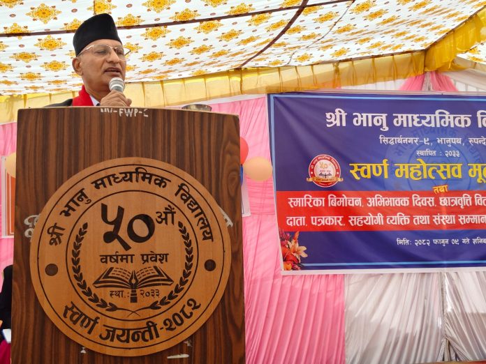 भैरहवा । भानु माध्यमिक विद्यालय ले आफ्नो स्वर्ण महोत्सव विशेष समारोहका साथ मनाएको छ। रूपन्देही जिल्लाको सिद्धार्थनगर नगरपालिका–९ मा अवस्थित विद्यालयले शनिबार विविध कार्यक्रम आयोजना गरी ५० औँ वार्षिकोत्सव सम्पन्न गरेको हो।