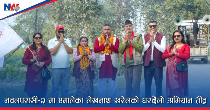 नवलपरासी (बर्दघाट सुस्ता पश्चिम) क्षेत्र नम्बर २ मा नेपाल कम्युनिष्ट पार्टी (एमाले) का तर्फबाट प्रतिनिधि सभा सदस्य उम्मेदवार लेखनाथ खरेल यतिबेला चुनावी घरदैलो कार्यक्रमलाई तीव्र बनाउँदै मतदाताको घर–घरमा पुगिरहेका छन्।
