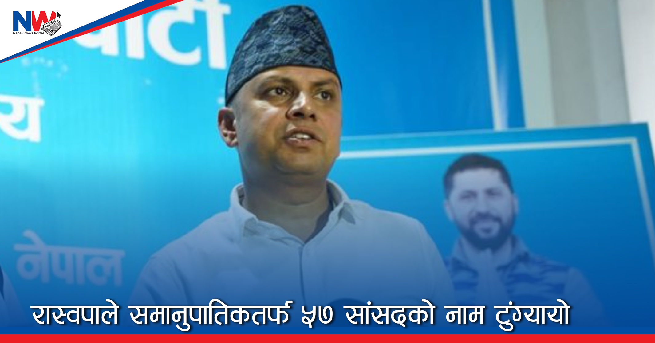 काठमाडौं । राष्ट्रिय स्वतन्त्र पार्टी (रास्वपा) ले समानुपातिक निर्वाचन प्रणालीबाट प्रतिनिधिसभामा पठाउने ५७ सांसदको नाम टुंगो लगाएको छ।