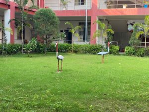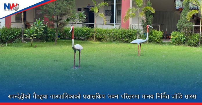 रुपन्देहीको गैडहवा गाउपालिकाकाे प्रशासकिय भवन परिसरमा मानव निर्मित जाेडि सारस । तस्विर: नरेश के.सी.