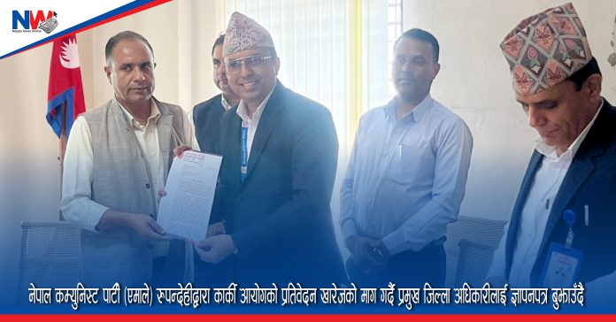 रुपन्देही । नेपाल कम्युनिष्ट पार्टी (एमाले) रुपन्देही जिल्ला कमिटीले कार्की आयोगको प्रतिवेदनप्रति गम्भीर आपत्ति जनाउँदै त्यसलाई तत्काल खारेज गर्न सरकारसँग माग गरेको छ।