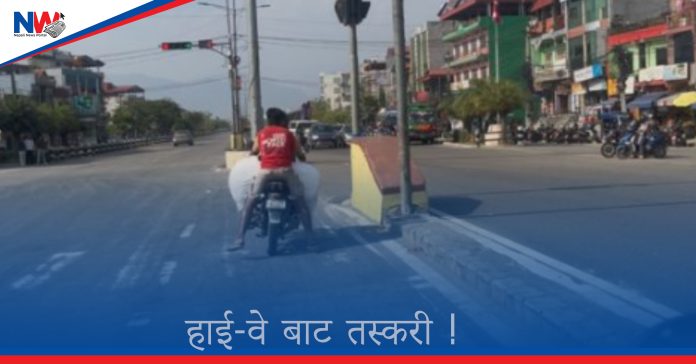 भिडियो देखिएको दृश्य मणिग्राम चौकको हो । भारतीय नम्बर प्लेटको मोटर साइकलमा कपडा तस्करी गरिरहेका दुईजनाले रातो ट्राफिक लाईट बलिरहँदा समेत त्यसको वेवास्ता गर्दै सर्भिस लाईन तिर हुुईकिएका थिए । बुटवल तर्फ जादै गरेको यो सम्वाददाता संयोगले जब हाई–वेबाट नै तस्करी भईरहेको देखेर मोबाइलबाट भिडियो कैद गर्न थाल्यो तब तस्करले बाईको गति यति बढाए कि आखाँले समेत भेऊ पान छाड्यो ।